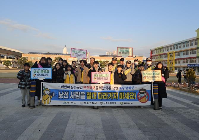 이번 캠페인은 최근 전국적으로 어린이 대상 약취·유인 시도가 증가하여 성주군청·성주경찰서·성주초등학교·녹색어머니회 등 관계기관 합동으로▲ 약취유인 예방수칙 교육 ▲ 재난 유형별 국민행동요령 홍보물 배부 ▲ 학교 주변 안전 점검 등을 실시했다.