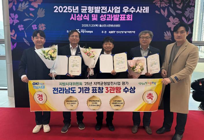 [뉴스스텝] 전라남도는 대통령직속 지방시대위원회에서 주최하는 2025년 균형발전사업 우수사례 시상식에서 전국에서 유일하게 3개 부문을 모두 수상했다고 밝혔다.