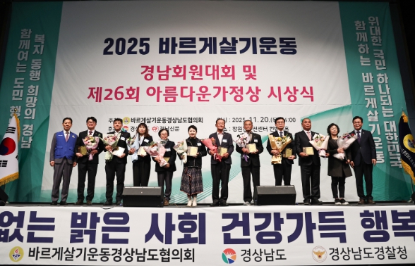 한편, 바르게살기운동 경상남도협의회는 도내 7만5천여 명의 회원이 활동하며, 건전한 공동체 형성과 바른 생활문화 확산에 중요한 역할을 수행해 온 지역 대표 국민운동단체다. 아름다운 가정상은 1999년부터 협의회와 경남신문이 공동으로 매년 개최해 온 지역 대표 가족문화 시상 프로그램이다.