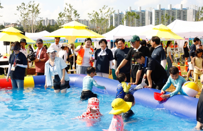 행사에서는 시민 모두가 참여하는 대형 퍼포먼스 ‘워터붐업’, 팀별 대항전 형식의 물놀이 게임뿐 아니라 광복절 맞이 ‘지문으로 만드는 태극기’이벤트 등이 진행돼 참가자들의 웃음과 환호가 이어졌다.