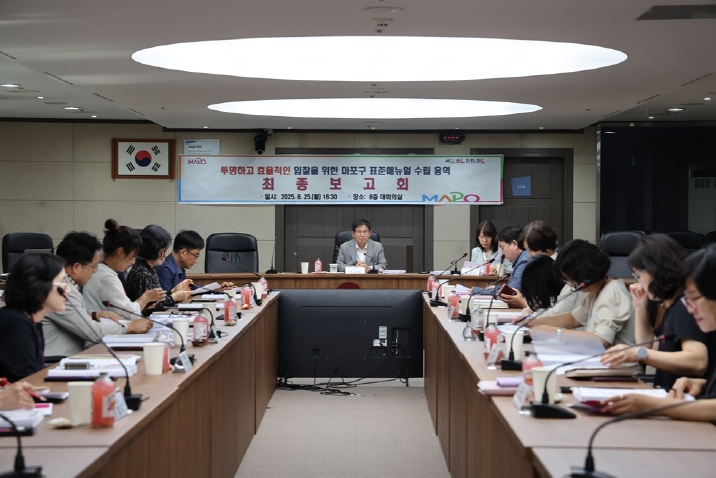 마포구는 지난 5월 자치구 최초로‘입찰 표준매뉴얼 수립 용역’에 착수했다. 이는 입찰 업무의 투명성과 효율성을 높이기 위한 조치로, 구에서 추진한 모든 입찰·계약 현황을 분석하고 개선 방안을 검토해 온 결과물이 이날 보고회에서 공개됐다.