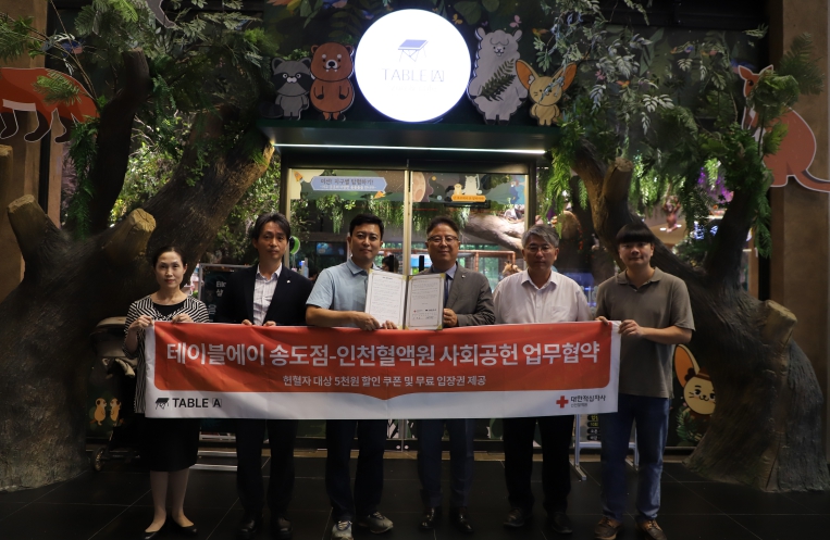 [뉴스스텝] 대한적십자사 인천혈액원(원장 김영섭)은 8월6일, 실내 동물원 ㈜테이블에이(대표이사 지효연)와 헌혈자 지원을 위한 제휴 협약을 체결했다.