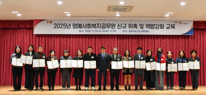 [뉴스스텝] 김포시는 지난 26일 통·리장과 지역사회보장협의체 위원 등 지역 주민 181명을 신규 명예사회복지공무원으로 위촉했다. 이 중 대표 15명에게 위촉장을 수여했으며, 약 100명을 대상으로 역량 강화 교육도 함께 진행했다.