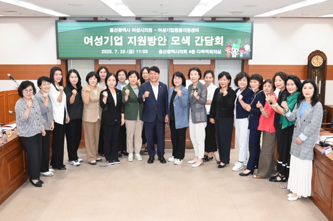 울산시의회 문화복지환경위원회 이영해․손명희 의원은 울산여성기업종합지원센터(센터장 송해숙)와 24일 오전 11시 시의회 4층 다목적회의실에서‘여성기업 지원방안 모색 간담회’를 개최했다. 이 자리에는 이성룡 의장도 참석해 여성기업인들의 목소리를 함께 청취했다.