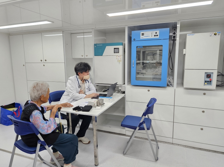 의과진료는 이동형 진료 차량 내에서 진행했고, 가정의학과·재활의학과 전문과목 진료와 더불어 혈액검사 및 심전도 등 다양한 검사까지 진행했고, 한방진료도 제공했다.