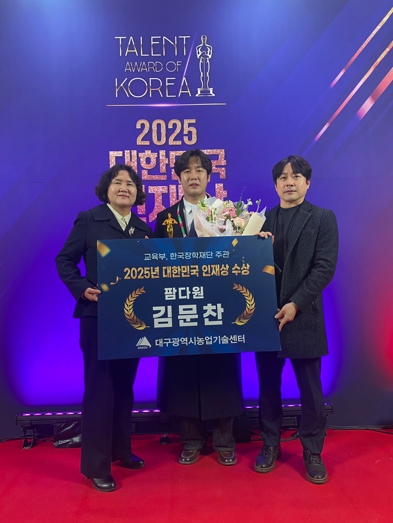 [뉴스스텝] 대구 청년농업인 김문찬 팜다원 대표가 12월 24일 세종시 정부세종컨벤션센터에서 열린 ‘2025년 대한민국 인재상’ 시상식에서 대한민국 인재상을 수상했다.