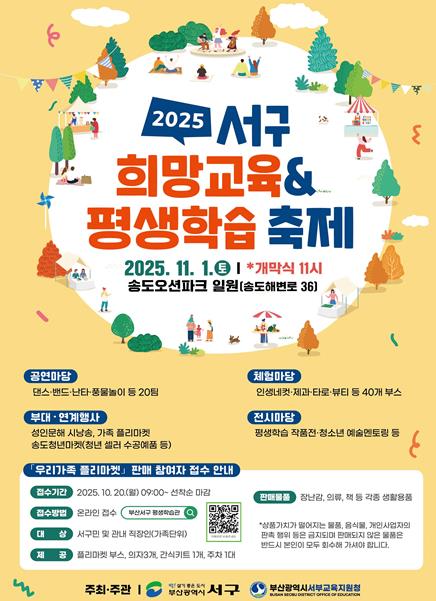 [뉴스스텝] 부산 서구는 오는 11월 1일 송도오션파크에서 서부교육지원청과 공동으로 '2025년 서구 희망교육 & 평생학습 축제'를 개최한다.