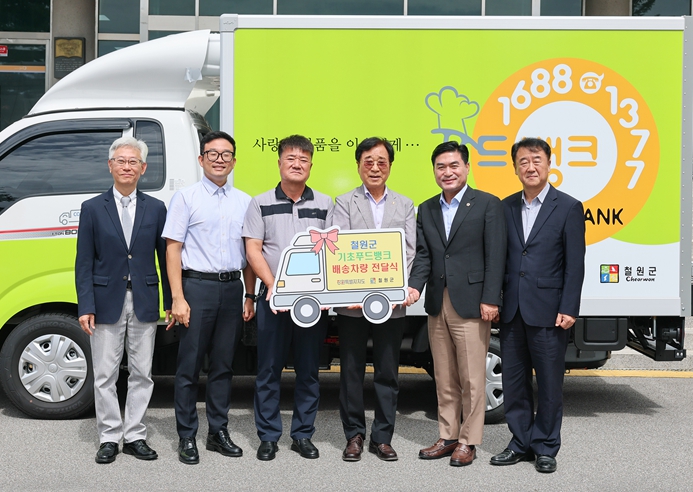 [뉴스스텝] 철원군은 지난 8일 철원군청 광장에서 기부식품 배송 차량인 푸드뱅크 전용 차량(냉동탑차 1톤) 전달식을 가졌다.