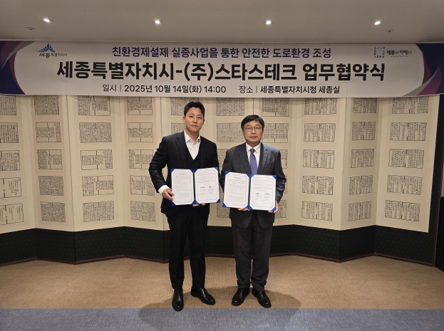 [뉴스스텝] 세종특별자치시가 14일 시청 세종실에서 ㈜스타스테크(대표 양승찬)와 업무협약을 체결해 3년간 총 1200t의 친환경 제설제를 지원받는다.