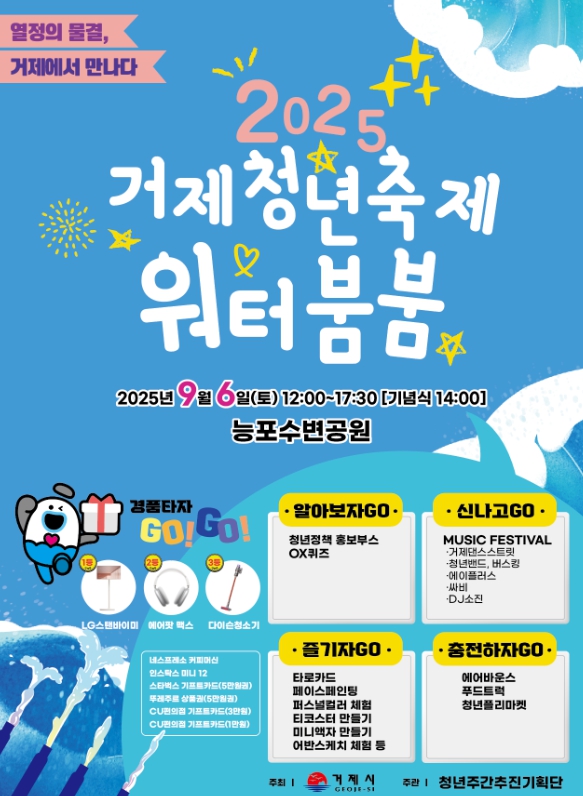 [뉴스스텝] 거제시는 오는 9월 6일 토요일 능포수변공원에서 '2025 거제청년축제 워터붐붐' 행사를 개최한다.