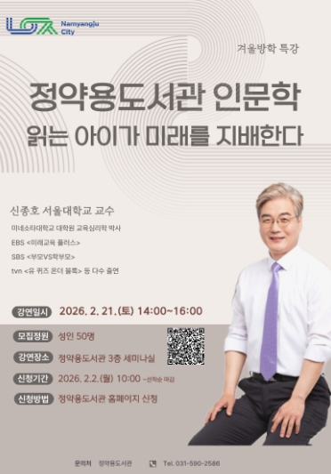 한편, 정약용도서관은 시민의 삶에 도움이 되는 인문학 강연을 매월 셋째 주 토요일에 정기적으로 운영하고 있으며, 다음 강연은 3월 21일 진행될 예정이다.