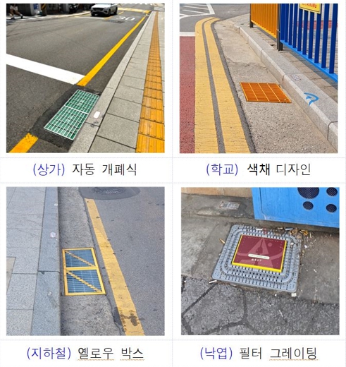 또한 유동 인구가 많은 지하철 역사 주변 250개소에는 ‘경고성 옐로우박스’ 디자인 뚜껑을 설치해 이물질 투기를 사전에 방지하고 있다. 이와 함께 재래시장 주변 이면도로 50개소에는 낙엽으로 인한 침수 피해를 막기 위해 낙엽 필터 그레이팅을 도입했다.