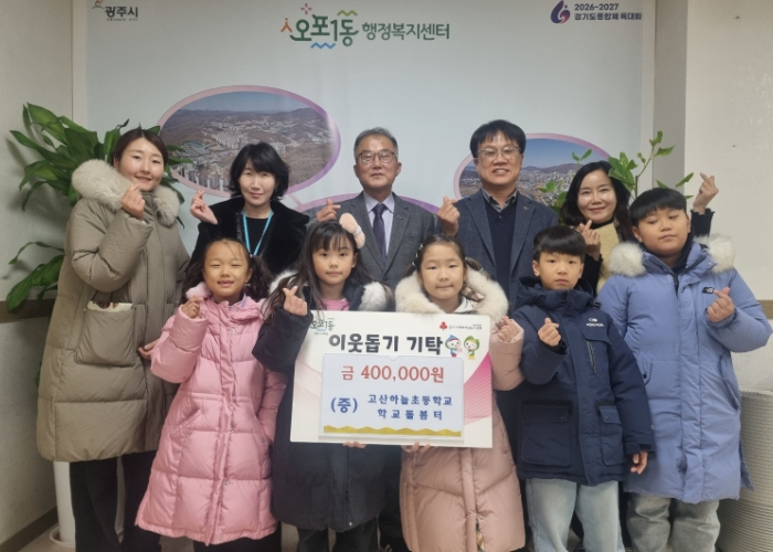 | ▲ 고산하늘초 학교돌봄터, 광주시 오포1동에 이웃돕기 성금 40만 원 기탁 |