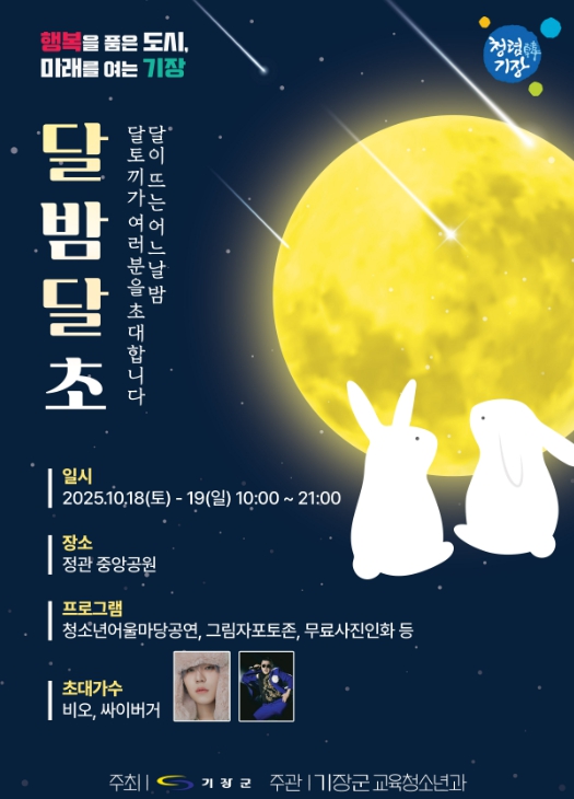 [뉴스스텝] 기장군은 오는 18일부터 19일까지 정관읍 중앙공원 일원에서 2025 기장군청소년어울마당 ‘달밤달초’를 개최한다고 15일 밝혔다.