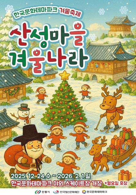 [뉴스스텝] 안동시와 한국정신문화재단은 한국문화테마파크에서 12월 24일부터 2026년 2월 1일까지 크리스마스와 겨울을 주제로 한 ‘산성마을 겨울나라’ 행사를 한국문화테마파크 일원에서 개최한다고 밝혔다.