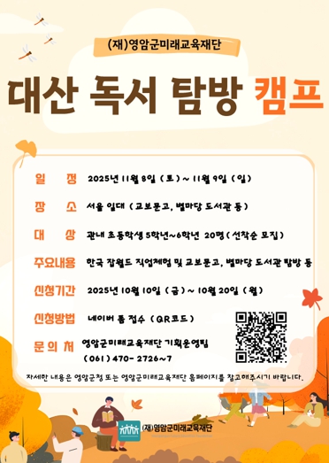 ▲ 영암군미래교육재단, 대산 독서 탐방 캠프 참가자 모집 |