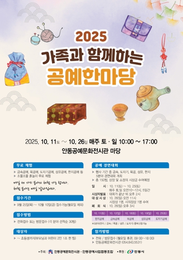 안동시 관계자는 “이번 ‘2025 가족과 함께하는 공예한마당’ 행사는 시민이 일상 속에서 공예의 아름다움과 가치를 직접 느낄 수 있는 소중한 기회”라며 “특히 어린이들이 가족과 함께 다양한 공예 분야에 참여하며 창의력과 손재주를 키울 수 있는 뜻깊은 시간이 되길 바란다”고 전했다.
