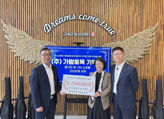 이상근 고성군수는 “지역 청소년들의 문화예술 활동을 위해 기탁해주신 ㈜가람토목에 감사의 인사를 전한다”라며, 이런 따뜻한 마음이 고성의 미래를 밝게 만들고 지역 청소년들에게 큰 힘이 될 것”이라고 전했다.