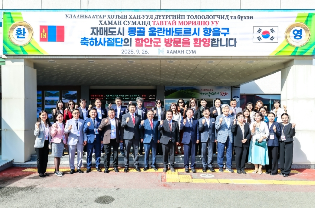 [뉴스스텝] 함안군은 국제 자매도시인 몽골 울란바토르시 항올구 대표단이 지난 26일부터 28일까지 2박 3일 일정으로 함안을 방문해 제37회 아라가야문화제를 함께하며 교류 협력 방안을 논의했다고 밝혔다.