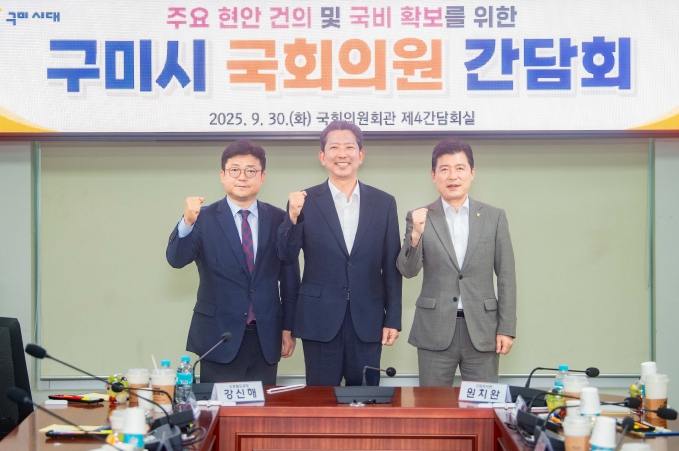 [뉴스스텝] 구미시는 9월 30일 국회를 방문해 구자근, 강명구 지역구 국회의원과 간담회를 열고 지역 주요 현안과 국비 확보 전략을 논의했다. 이날 간담회에는 김장호 시장을 비롯해 구미시 주요 간부 공무원 등 30여 명이 참석했다. 시는 현안 사업 추진 상황과 정부 예산 동향을 공유하며 국회 차원의 전략적 지원 방안을 모색했다.