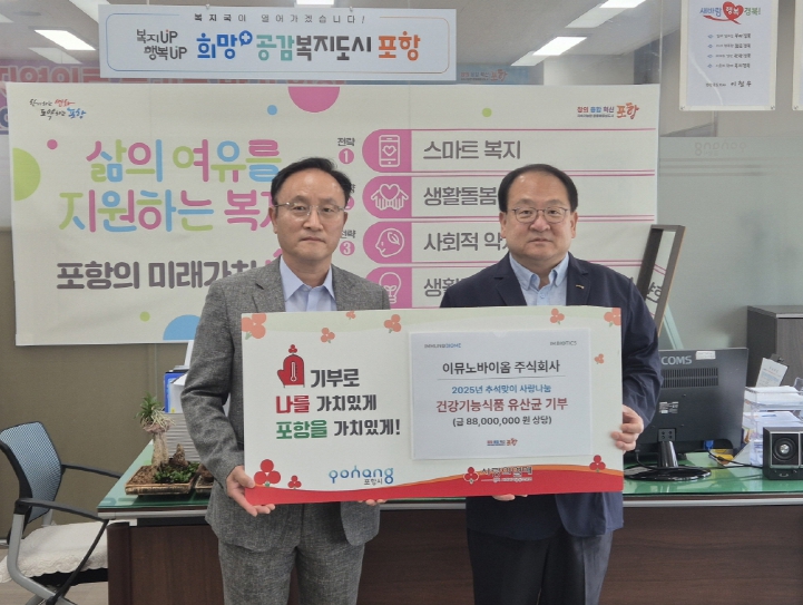 편준 포항시 복지정책국장은 “AI 신약개발 기술력을 바탕으로 사회적 책임을 실천한 이뮤노바이옴에 감사드린다”며 “포항시도 취약계층의 건강한 삶을 지원하기 위해 맞춤형 복지정책을 지속적으로 추진하겠다”고 밝혔다.