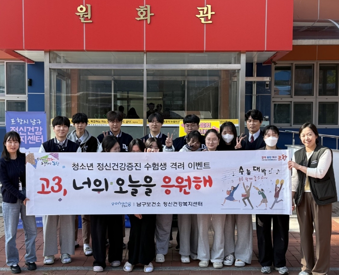 [뉴스스텝] 포항시 남구정신건강복지센터는 4일부터 대학수학능력시험을 앞둔 수험생들의 긴장과 불안을 완화하고 마음의 안정을 돕기 위해 격려 이벤트를 운영하고 있다.