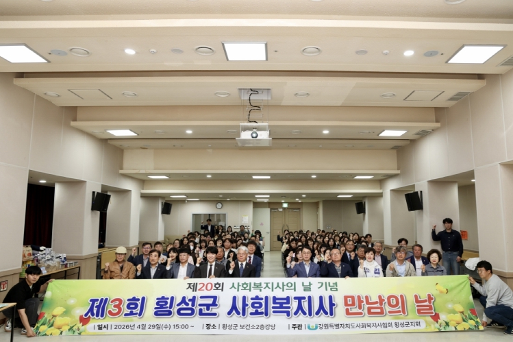 [뉴스스텝] 강원특별자치도사회복지사협회 횡성군지회(회장 최근화)는 ‘2026년 사회복지사의 날’을 기념하여 4월 29일 오후 3시 횡성군 보건소 2층 강당에서 ‘제3회 횡성군 사회복지사 만남의 날’행사를 성황리에 개최했다고 밝혔다.
