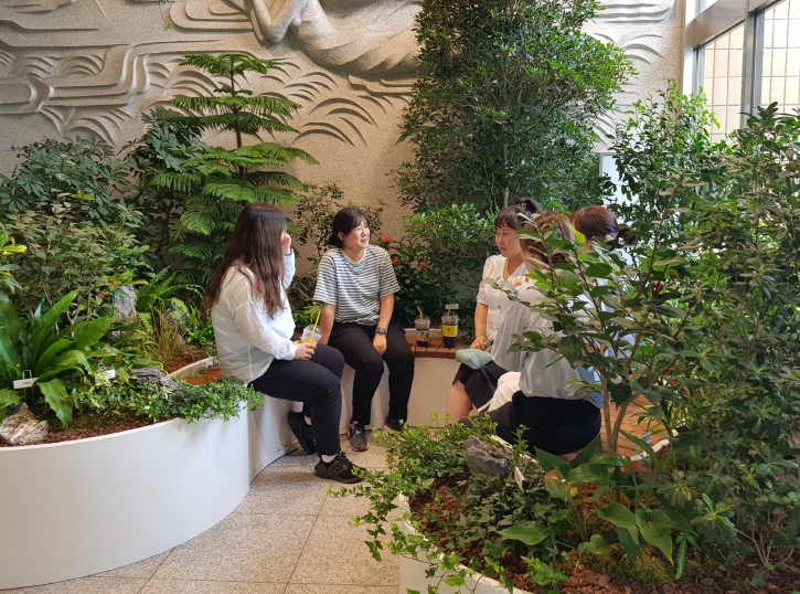 신관 로비와 민원실 앞 휴게공간에 조성된 실내정원은 자연 요소를 실내에 도입함으로써 민원 대기 시 스트레스를 완화하고, 실내 공기질 개선과 미세먼지 저감에도 기여하는 등 다양한 심리·환경적 치유 효과를 제공해 ‘생활 속 정원복지’의 우수사례로 자리매김하고 있다.
