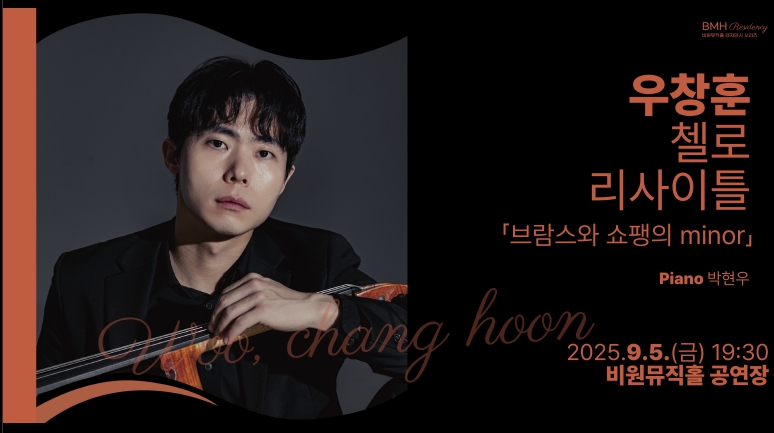 [뉴스스텝] BMH 레지던시 6인의 리사이틀 시리즈 세 번째, 첼리스트 우창훈이 선보이는 브람스와 쇼팽이 작곡한 단조 구성의 첼로 소나타 콘서트 개최