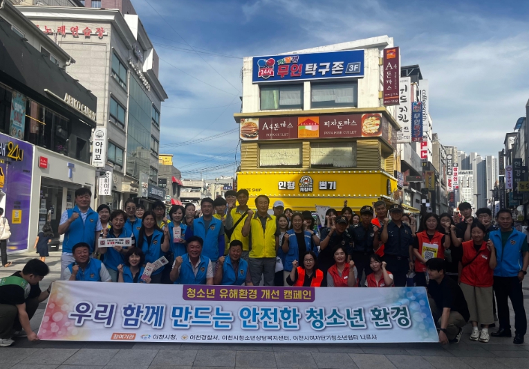 [뉴스스텝] 이천시가 청소년들에게 안전한 성장환경을 제공하기 위한 캠페인에 나섰다. 지난 8월 12일, 여름 휴가철을 맞이하여 이천시청 청년아동과, 이천경찰서 여성청소년과와 범죄예방대응과, 그리고 관내 민간 청소년유해환경감시단(한국B.B.S경기도연맹 이천시지회), 이천경찰서 청소년지도위원회, (재)이천시청소년재단 재단사무국, 청소년상담복지센터와 여자단기청소년쉼터 등 40여 명이 참여하여 여름 휴가철 청소년 유해환경을 개선하고 청소년들의 일탈 행위를 방지하기 위한 예방 활동을 펼쳤다.