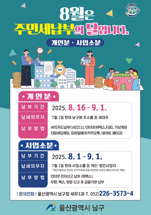 ▲ 남구 주민세 9월 1일까지 납부하세요 |