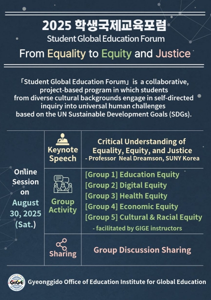 조영민 경기도교육청국제교육원장은 "올해 포럼은 평등에서 나아가 형평성과 정의를 다루며 학생들이 공통의 사회문제를 인식하고 협력하여 문제를 해결할 수 있는 방안을 모색할 수 있도록 지원하는 데 중점을 두었다”며 “앞으로도 학생들이 세계시민으로 성장할 수 있도록 다양한 국제교육 기회를 제공하겠다”고 말했다.