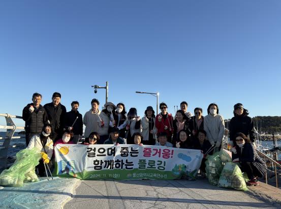 [뉴스스텝] 울산교육연수원은 지난 11일 북구 정자동 일대에서 ‘걸으며 줍는 즐거움! 함께하는 쓰담 달리기(플로깅)’를 주제로 환경 정화 활동을 했다.