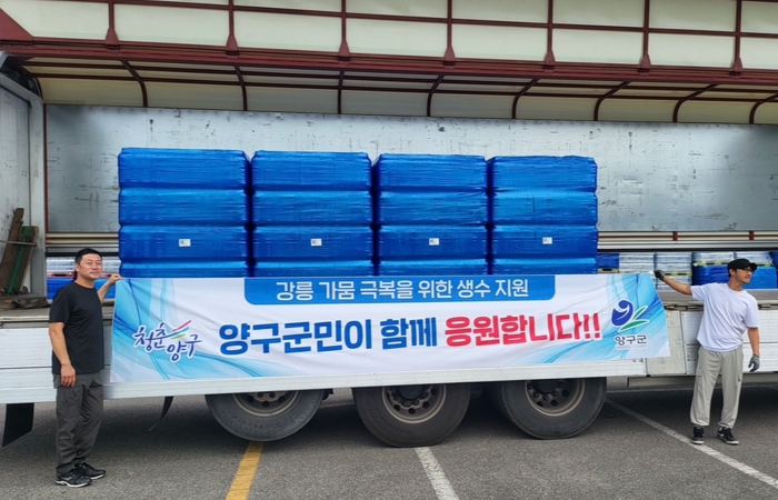 [뉴스스텝] 양구군은 유례없는 가뭄으로 일상 생활에 어려움을 겪고 있는 강릉시에 지난 12일 생수를 긴급 지원했다. 강릉시는 극심한 가뭄으로 지난달 30일 재난사태가 선포됐으며, 식수원 고갈로 인해 제한 급수가 시행되고 있다.