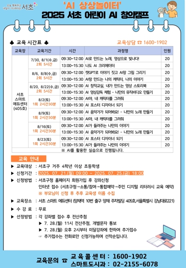 7월30일부터 서초구 거주 4학년 이상 초등학생 대상 창의력 키우는 AI 체험교육 운영