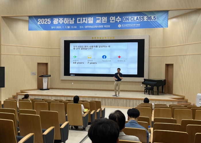 [뉴스스텝] 광주하남교육지원청은 교원의 디지털 교육 역량을 강화하고, 인간 중심의 미래 교육을 실현하기 위한 ‘2025 디지털 교원 연수 ON:CLASS 36.5’를 오는 7월 7일(광주), 14일(하남) 두 차례에 걸쳐 개최한다.
