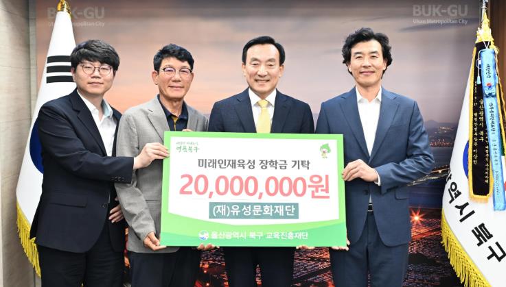 [뉴스스텝] (재)유성문화재단이 2일 울산 북구교육진흥재단에 지역 인재 육성을 위한 장학금 2천만원을 전달했다.