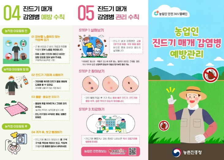 진드기 매개 감염병은 주로 4월에서 11월 사이, 특히 농번기에 집중적으로 발생하는 질병이다. SFTS(중증열성혈소판감소증후군)의 경우 치명률이 높고, 백신이나 치료제가 없어 야외 활동이 많은 농업인뿐만 아니라 주말농장 이용자나 등산객 등 일반 시민들도 각별히 주의해야 한다.