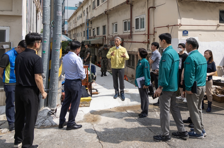 윤환 구청장은 침수 피해가 극심했던 주요 현장을 연일 찾아 피해 상황을 점검하고, 관계자들에게 신속하고 철저한 복구를 지시했다.