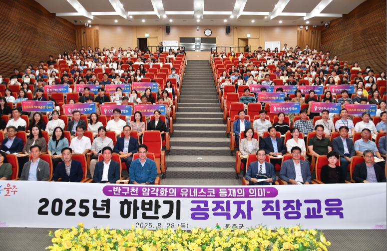 이순걸 군수는 “반구천 암각화의 최초 발견자인 문명대 교수 특별강연을 통해 직원들이 세계유산으로서 암각화의 의미를 깊이 되새길 수 있었다”며 “세계유산은 울주군민 모두의 자랑이자 인류 공동의 자산인 만큼 앞으로도 소중한 문화유산 보존·계승에 최선을 다하겠다”고 말했다.