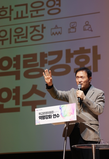 연수는 학교 자치 실현을 위한 학교운영위원장의 전문성과 소통역량 강화를 위해 마련됐다. 경기 남부와 북부 권역에서 각각 열리며 17일 남부권 연수는 임태희 교육감을 비롯해 특강을 맡은 전 KBS 김재원 아나운서, 도내 초・중・고교 학교운영위원장 400여 명이 참석했다.