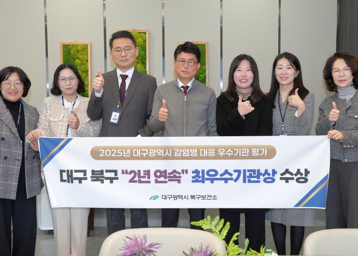 [뉴스스텝] 대구 북구보건소는 대구광역시가 주관하는 '2025년 대구광역시 감염병 대응 우수기관'평가에서 2024년에 이어 2025년에도‘2년 연속 최우수기관’으로 선정되는 쾌거를 달성했다.