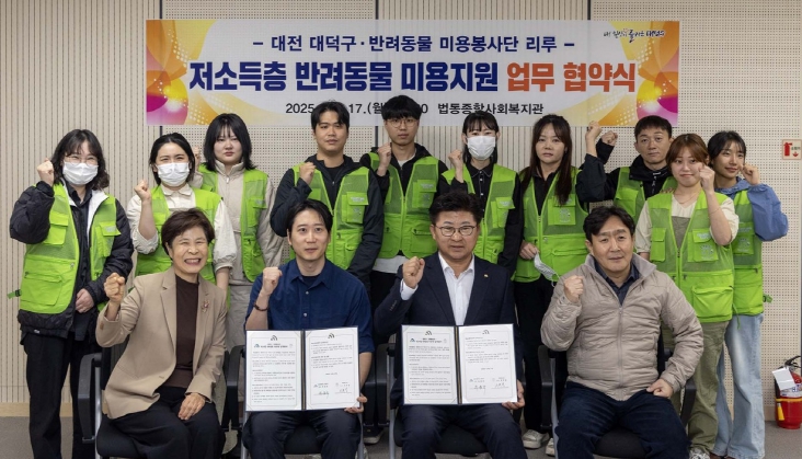 [뉴스스텝] 대전 대덕구는 17일 반려동물 미용봉사단 ‘리루’(단장 서주영)와 저소득 주민의 반려동물 미용지원을 위한 업무협약을 체결했다고 밝혔다.