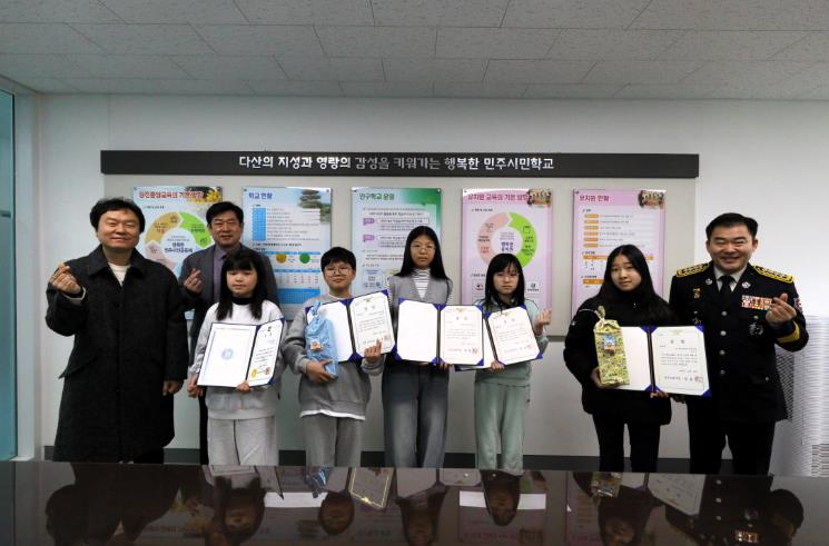 강진소방서는 수상 학생들의 노력을 격려하고 학교 현장의 안전문화 확산을 위해 정용인 강진소방서장이 3개 초등학교를 직접 방문해 시상식을 진행했으며, 학생들에게 상장과 함께 격려의 메시지를 전달했다.