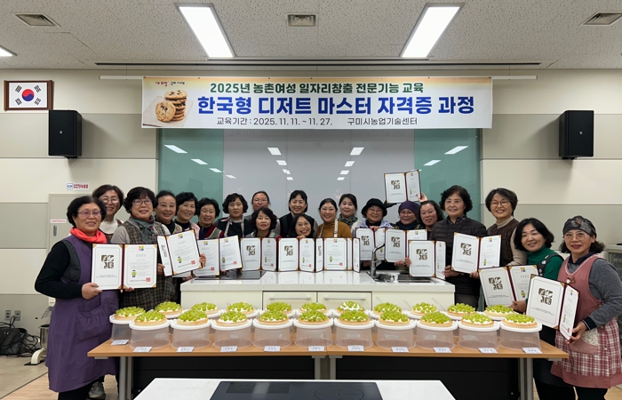 한 수강생은 “구미 밀가리를 활용해 건강한 디저트를 만들 수 있어 뜻깊었다”며 “자격증까지 취득해 지역에서도 새로운 도전을 이어갈 자신감을 얻었다”고 소감을 밝혔다.