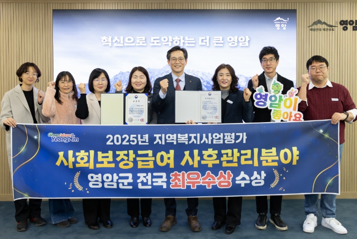 [뉴스스텝] 영암군이 29일 보건복지부의 ‘2025년 지역복지사업 평가’ 사회보장급여 사후관리 분야 최우수상인 보건복지부장관상을, ‘2025년 사회보장정보시스템 구축 및 운영’ 개인정보 보호 분야에서 보건복지부장관상을 각각 수상해 2관왕에 올랐다.