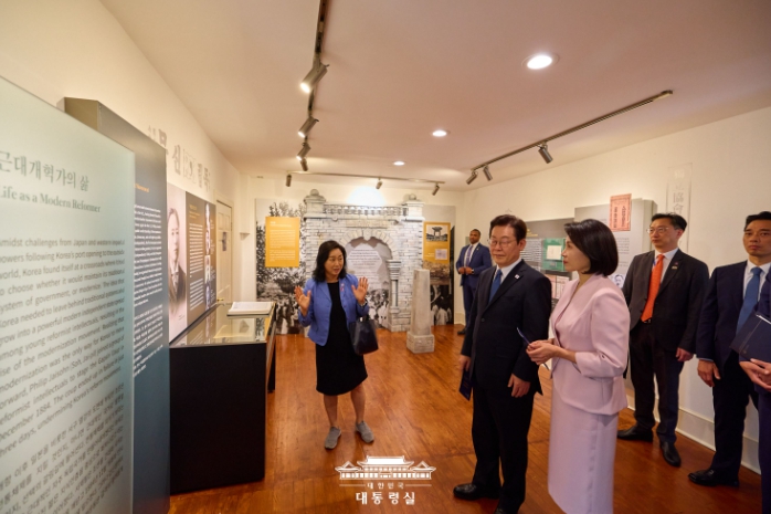 [뉴스스텝] 이재명 대통령과 김혜경 여사는 27일 미국 필라델피아에 있는 서재필기념관(서재필기념재단 이사장 최정수)을 방문하여 기념관 시설을 둘러보고 재단 관계자들을 격려했다.