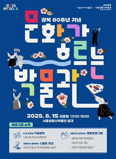 [뉴스스텝] 서울역사박물관은 오는 15일 오후 1시부터 6시까지 분관인 서울생활사박물관에서 ‘광복80주년 기념 문화행사 '문화가 흐르는 박물관'’를 개최한다.