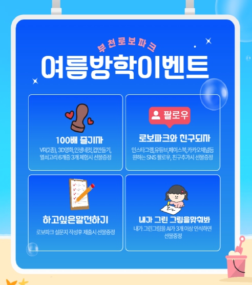 [뉴스스텝] 부천산업진흥원이 운영하는 부천로보파크는 여름방학을 맞아 어린이와 가족을 대상으로 특별 체험 이벤트를 오는 8월 1일부터 17일까지 진행한다.