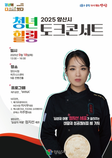 [뉴스스텝] 양산시가 청년들을 위한 특별한 힐링 무대를 준비했다. 9월 18일 오후 1시 30분 양산시청 비즈니스센터 5층 컨벤션홀에서 열리는 ‘2025 양산시 청년 힐링 토크 콘서트’가 그 주인공이다.